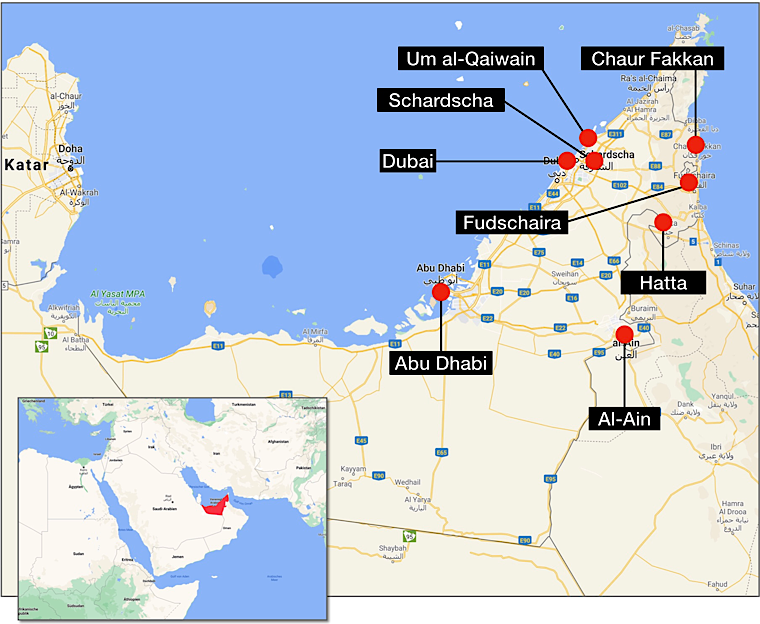 Bei dieser Mietwagenrundreise lernten wir die Emirate kennen, die sich gerade für den Tourismus öffneten. Übernachtet haben wir in luxuriösen Hotels in denen sich zu dieser Zeit nur wenige Besucher aufhielten.