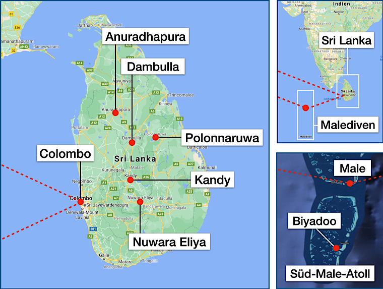 Vom 12. bis zum 27. Dezember 1995 erlebten wir die Rundreise in Sri Lanka und den Badeaufenthalt auf der Malediveninsel Biyadoo im Süd-Male-Atoll.
