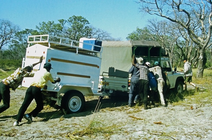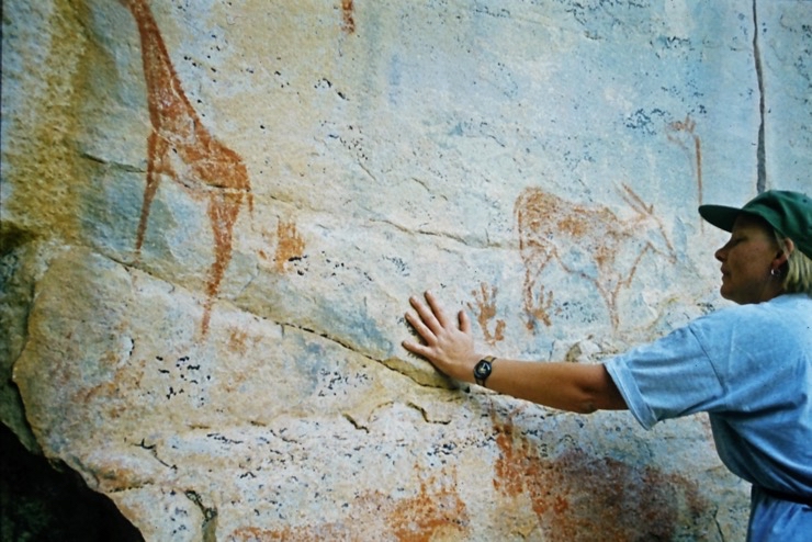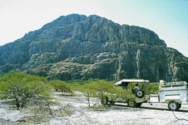 Die Fahrt zu den Tsodilo-Hills war wegen des Tiefsandes nicht einfach. Luft ablassen der Reifen genügte nicht immer, auch schieben war angesagt. An den Hills schlugen wir unser Camp auf und erkletterten uns die Felsmalereien.