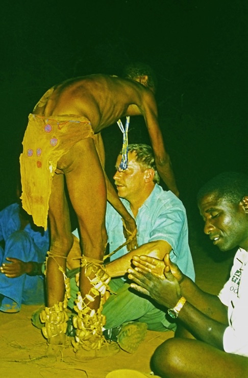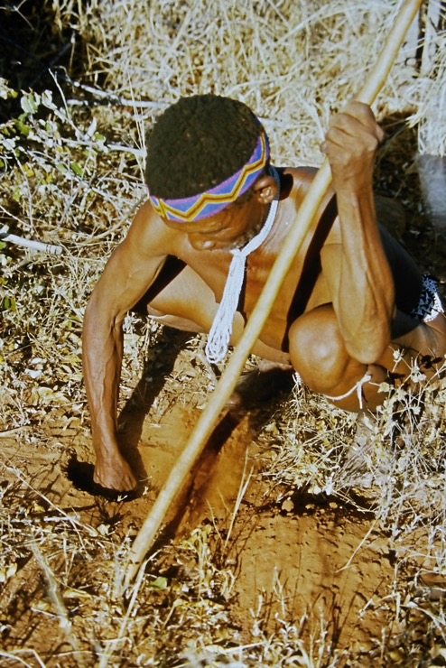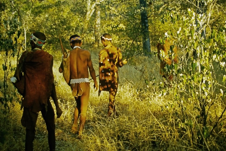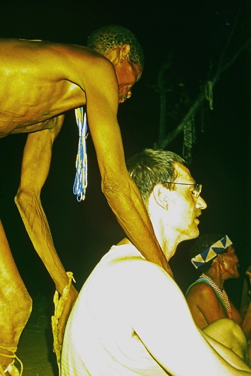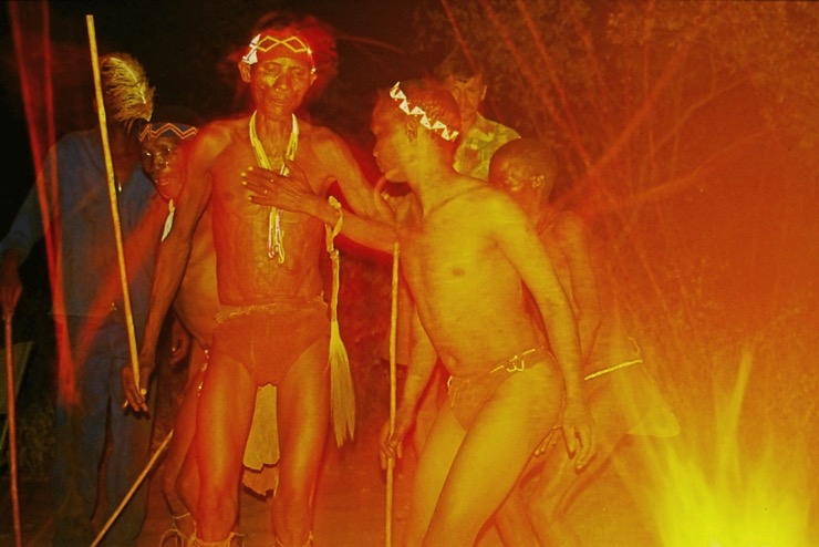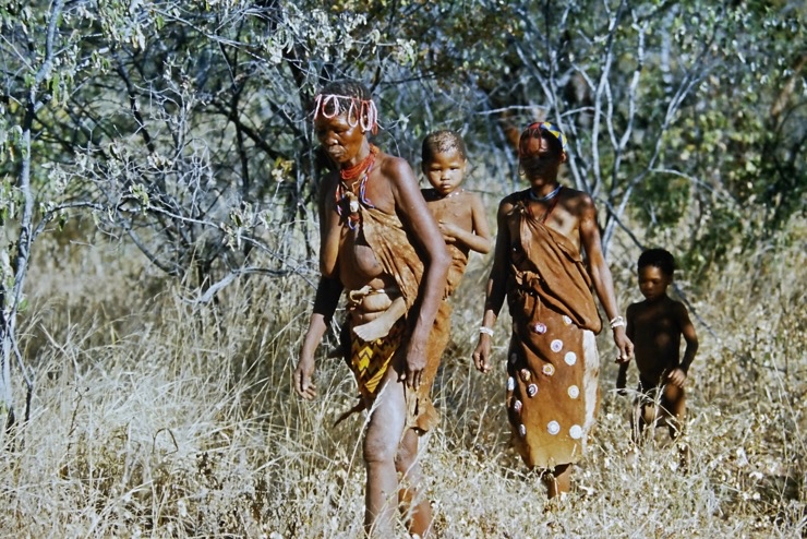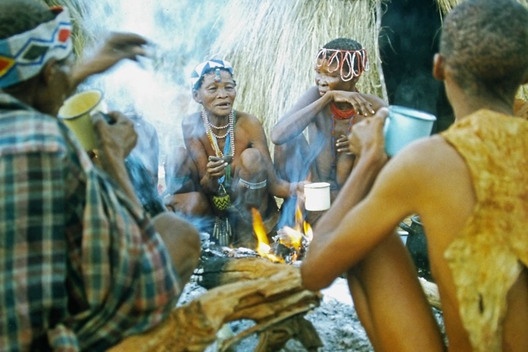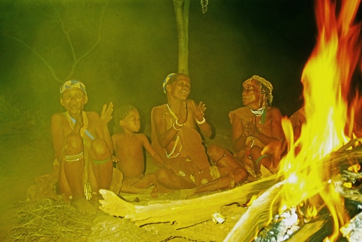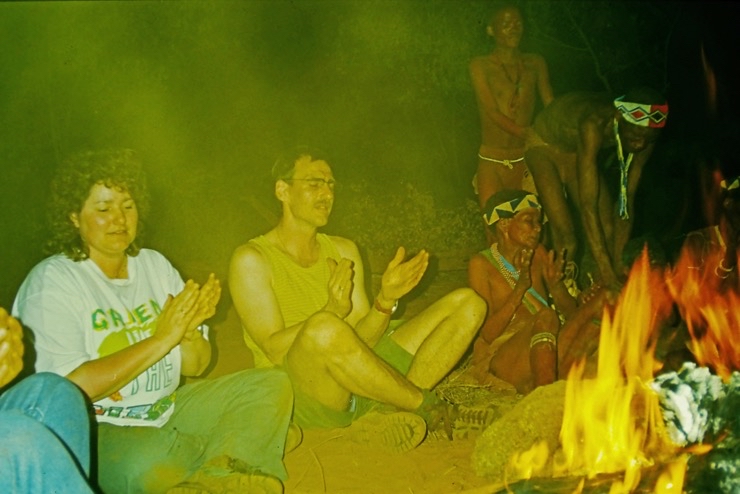 Wir kamen in Maun an und fuhren mit Tiaans Safari-Auto direkt zu den Aha-Hills. Hier bestand die Möglichkeit, mit Nachfahren der Buschmänner zwei Tage zu verbringen – traditionell im Busch. Sie zeigten uns, wie sie sich früher kleideten, wie sie jagten und in der trockenen Savanne überlebten.