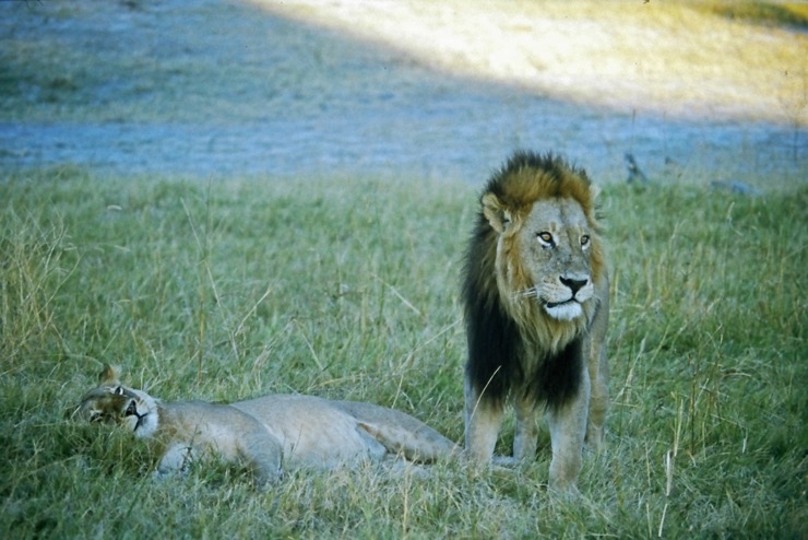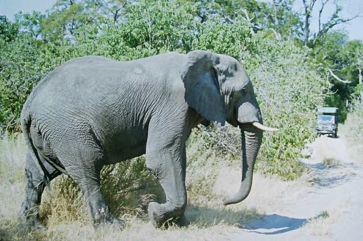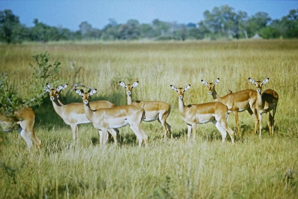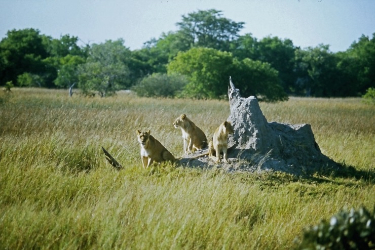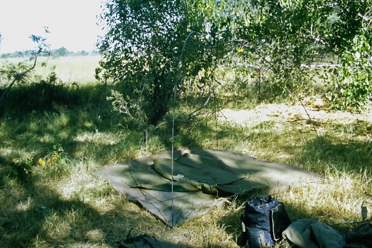 Um die Campingstellen im Moremi (wie auch im übrigen Botswana) gibt es keine Zäune. Man schläft in seinem Zelt in der Wildnis. In einer der Nächte hatten wir Besuch von einem Löwen. Wir verschliefen den Besuch, was wahrscheinlich auch besser war. Die Spuren am nächsten morgen im Camp waren aber der Beweis. Regel: Zelte immer geschlossen halten! Am Tage unternahmen wir mehrere Safaris, auf denen wir eine Menge ‚Game‘ zu sehen bekamen. Herrlich!