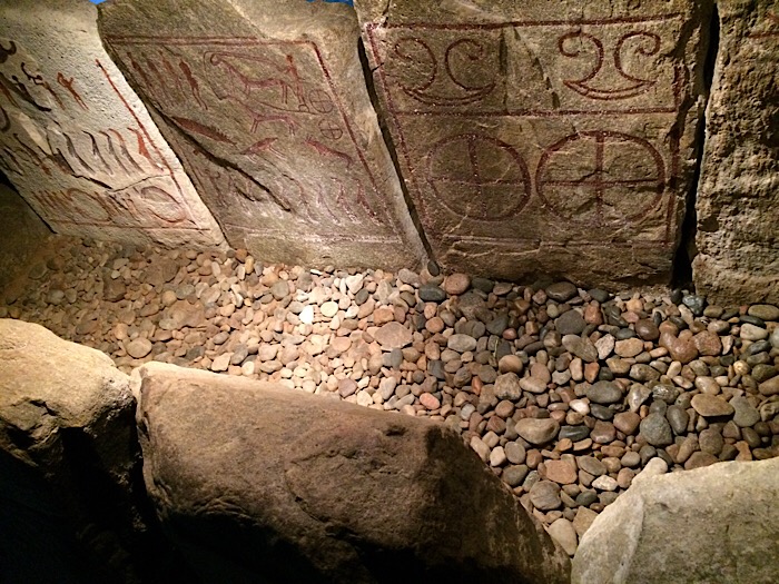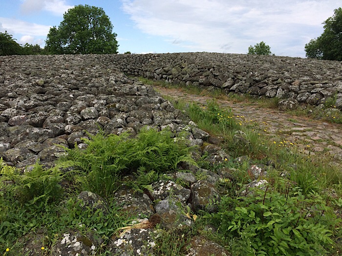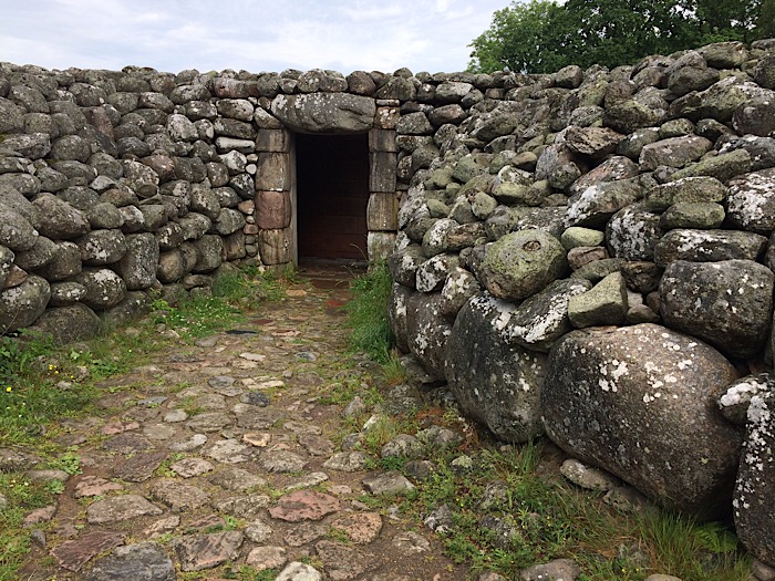 Vom Campingplatz machen wir uns zu Fuß auf zu einem Grab aus der Bronzezeit. Es hat eine imposante Breite von 75m und ist ein Hügel voller Steinen. Das innere (eine der Grabkammern) kann besichtigt werden.