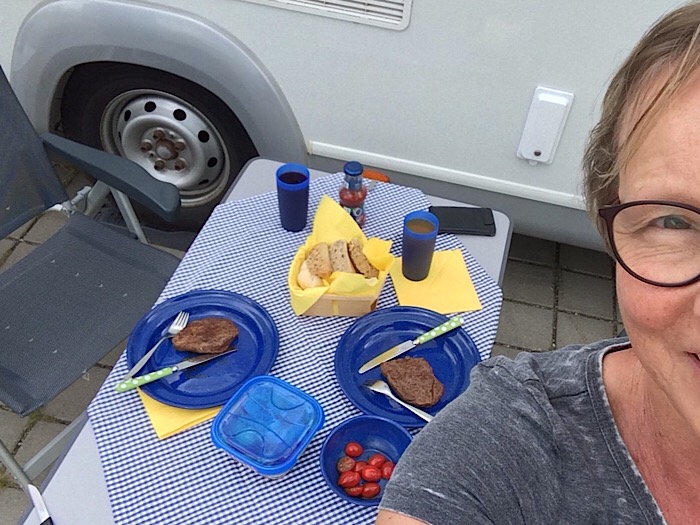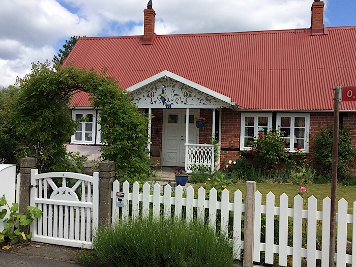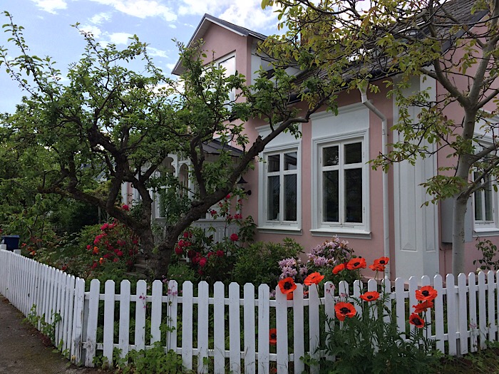 Nach der Besichtigung gehen wir durch den Ort Kivik zurück zum Campingplatz. Vorbei kommen wir an vielen Häusern mit liebevoll angelegten Vorgärten.