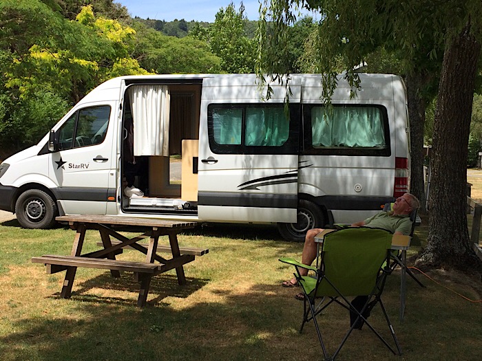 Um 18:30 Uhr sind wir wieder am Stellplatz. Recht eng, aber wie man sieht, sehr grün und sonnig. 🔆