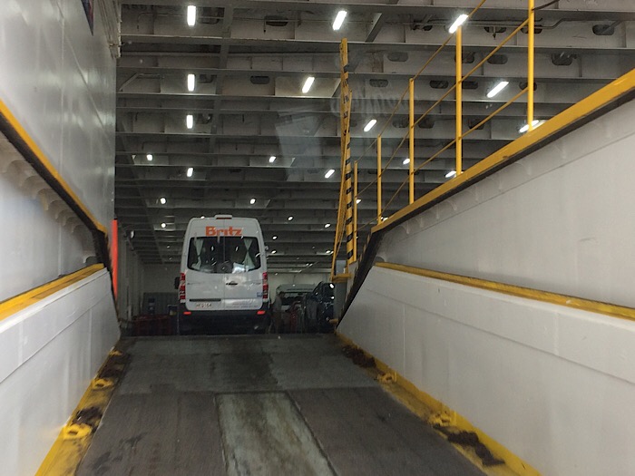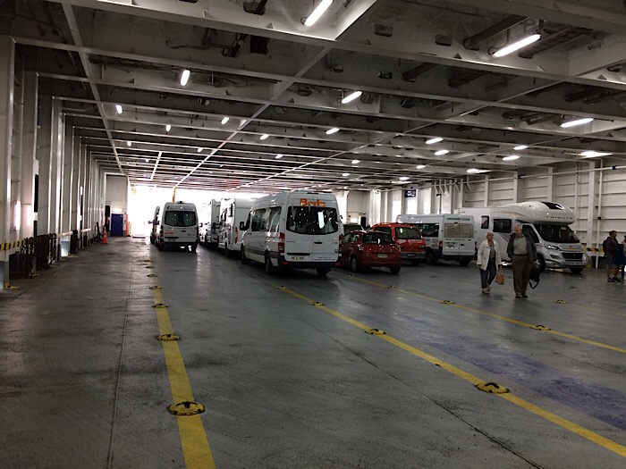 Nur noch die Rampe hoch und wir stehen auf dem zweiten Deck, auf dem noch genügend Platz ist.