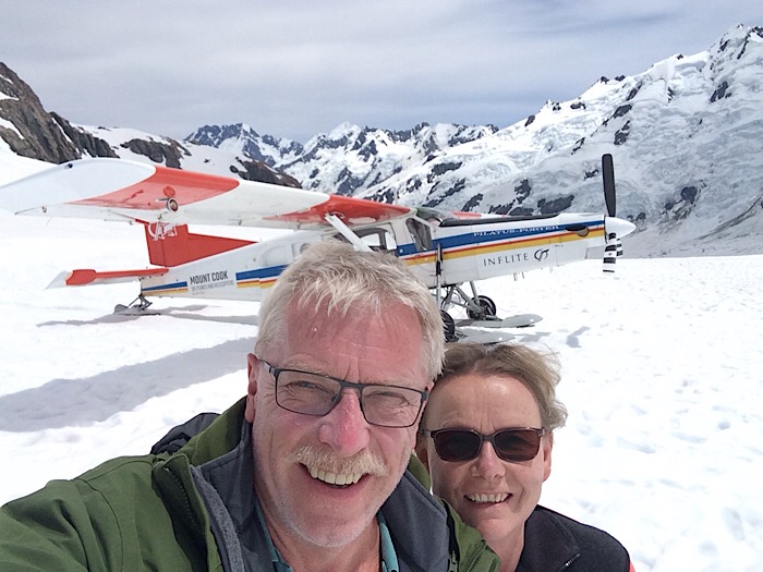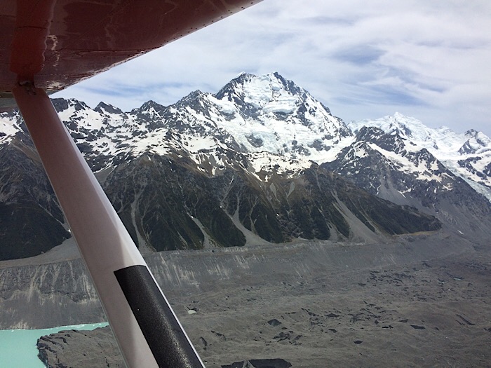 Wir fahren zum Aoraki-Park und fliegen von dort, vorbei am Mount Cook zum Tasman-Gletscher, auf dem wir kurz mal landen 😉. Ein tolles Erlebnis mit schönen Ausblicken.